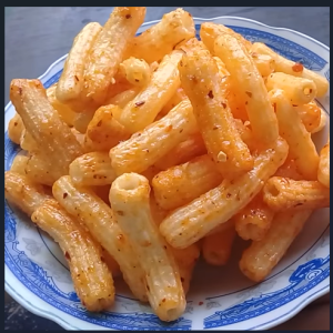 - Đói cồn cào có ngay snack nui bơ tỏi chiên giòn sốt cay